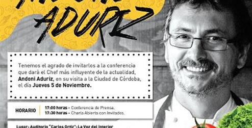 Invitado por la Municipalidad de Córdoba y el periódico La Voz del Interior, el cocinero vasco intercambió con colegas cordobeses experiencias sobre cocina e innovación. En el marco de su visita se proyectó el documental BSO, reflexión sobre la relación entre  la cocina del restaurante Mugaritz y la música, ejemplos de una cultura sin fronteras.