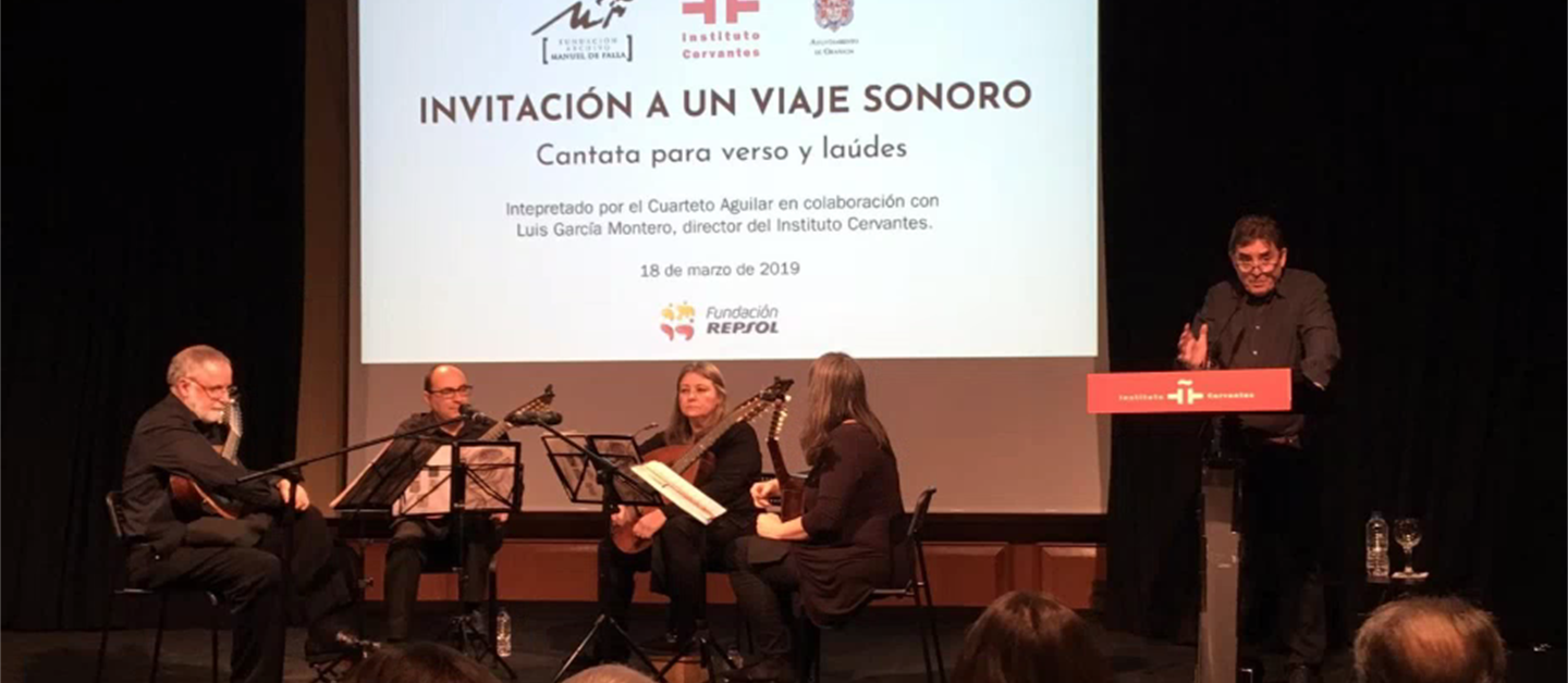 Invitamos a un viaje sonoro de la mano de Luis García Montero y el Cuarteto Aguilar, un concierto íntimo, una cantata para verso y laúdes.