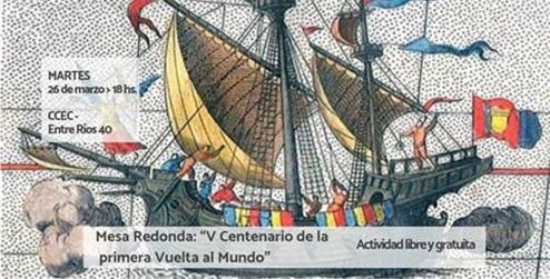 El Martes 26 de marzo a las 18 hs. se realizará en el Centro Cultural España Córdoba (Entre Ríos, 40), el evento Mesa redonda “V Centenario de la primera Vuelta al Mundo”