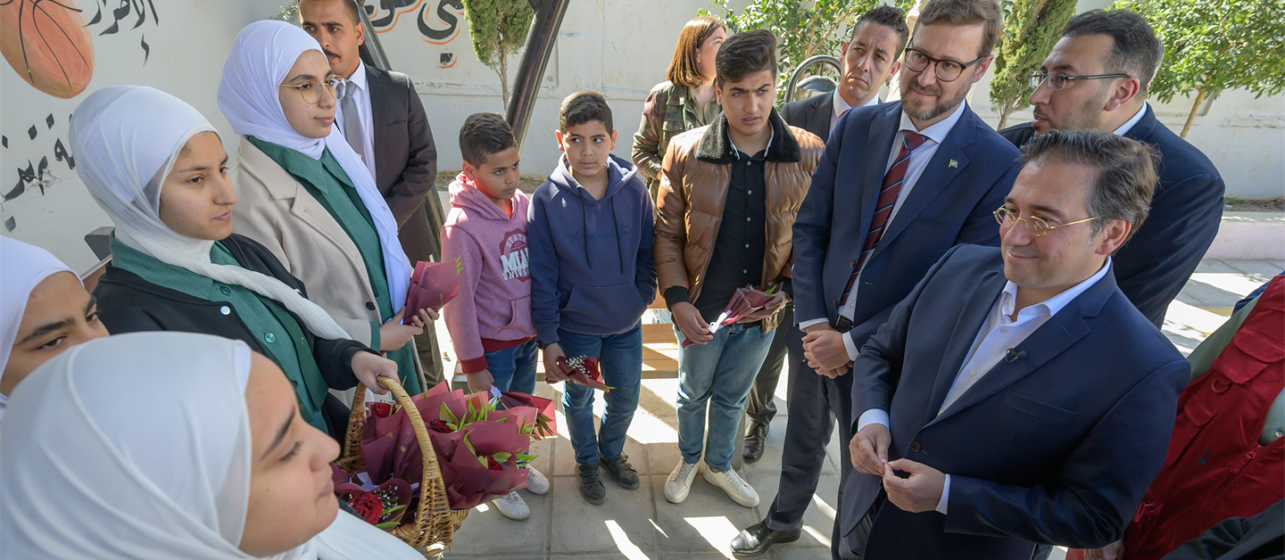 José Manuel Albares then met with representatives of Spanish NGOs in Jordan, to whom he conveyed our country's recognition of their work, and visited one of the camps of the United Nation's relief agency for Palestinian refugees (UNRWA), where he learned firsthand about the work undertaken by this organisation. This visit comes just a week after having announced to the commissioner of this agency, Philippe Lazzarini, a further donation of 20 million euros to continue with its work in helping the Palestinian population.