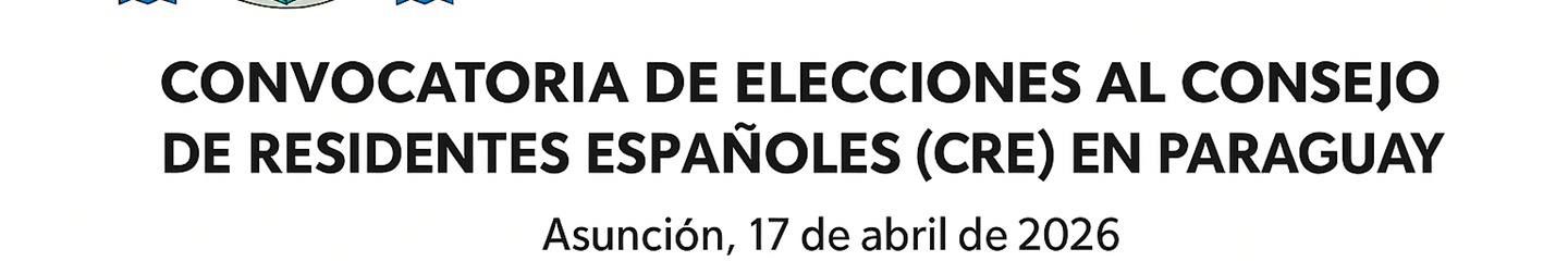 La Embajada de España en Asunción convoca elecciones para la constitución del Consejo de Residentes Españoles (CRE), que se celebrarán el domingo 10 de mayo de 2026 en la sede de la Embajada.