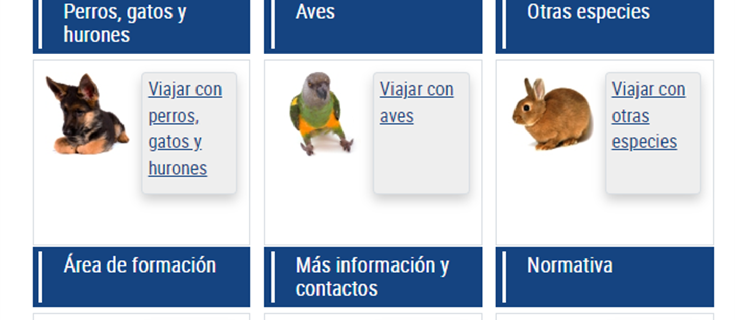 El Ministerio de Agricultura, Pesca y Alimentación cuenta en su página web con un apartado con información actualizada sobre “Viajar con animales de compañía”. La información está disponible en castellano, inglés y francés en el siguiente enlace: