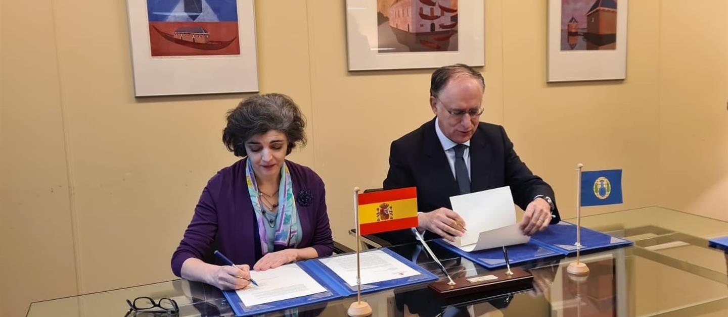 Hoy 24 de febrero se ha celebrado la ceremonia de firma de varias contribuciones voluntarias de España a la Organización para la Prohibición de Armas Químicas, entre la Embajadora de España en Países Bajos y Representante Permanente de España ante la OPAQ, Dª Consuelo Femenía, y el Director General de la Organización, D. Fernando Arias, en la sede del organismo en La Haya.