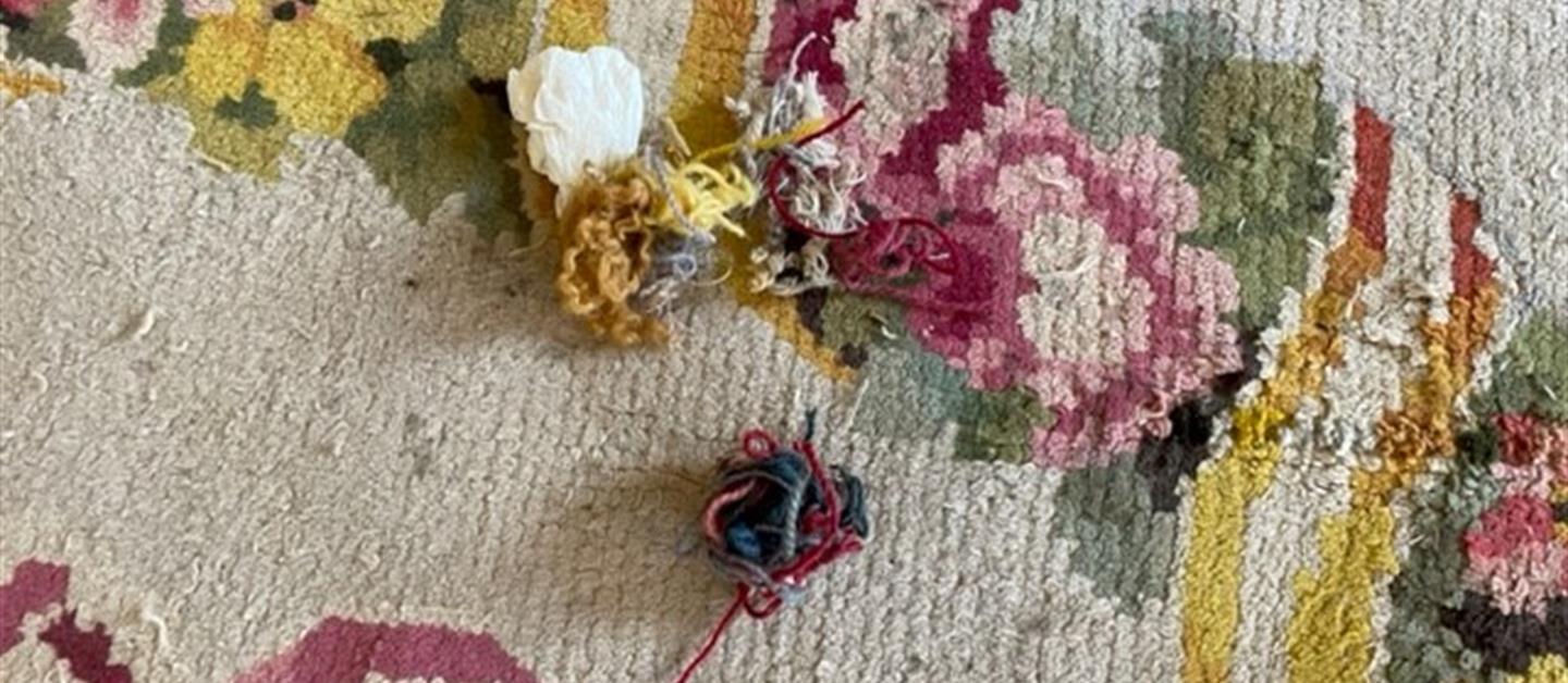 Photo of the rug in the gala dining room before its restoration
