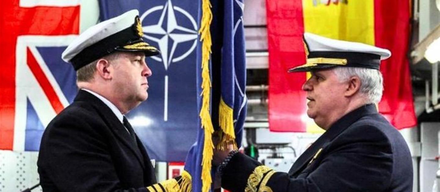 The ceremony, presided over by the Commander of MARCOM, Vice Admiral Robert Pedre, was attended by British and German military authorities, as well as the Spanish Defense Attaché in London, reflecting the allied and joint nature of the mission. Admiral Joaquín Ruiz Escagedo transferred command of SNMG-1 to British Commodore Maryla Ingham.