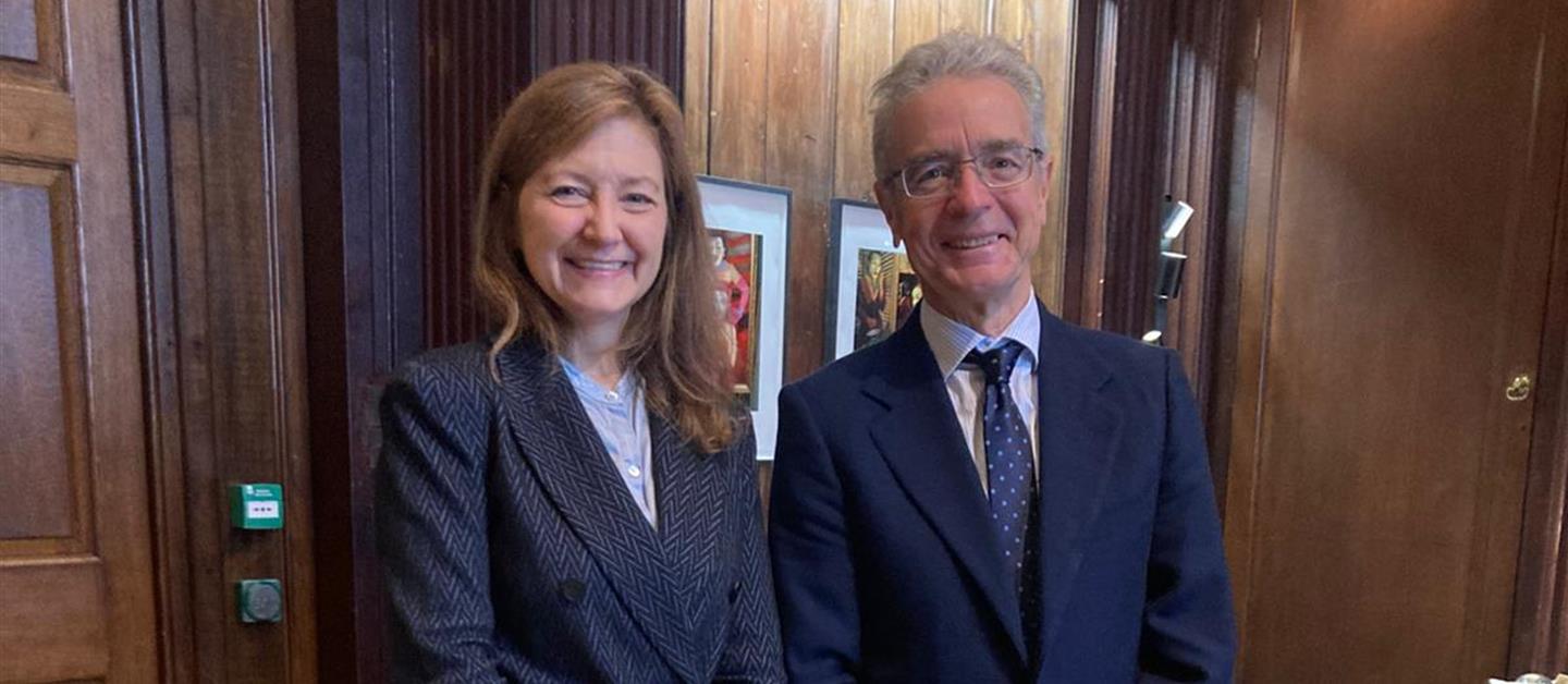 The head of the Spanish delegation, accompanied by the Counsellor for Cultural and Scientific Affairs, José María Robles Fraga, was welcomed by the Vice-Chancellor of the University of Cambridge, Deborah Prentice. They discussed relations between Spain and the United Kingdom, especially in the academic scope, and explored avenues for collaboration.
