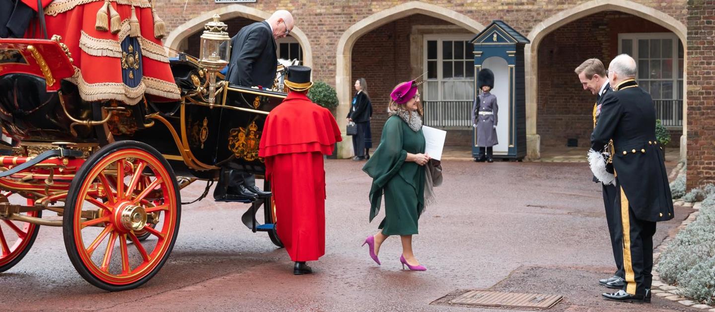 El marshal del cuerpo diplomático británico, Sir Alistair Harrison, pronunció un discurso en el que resaltó los lazos entre Reino Unido y España y deseó suerte a la embajadora.
