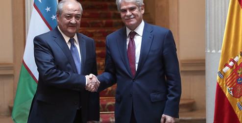 Madrid, 14 de noviembre de 2017. El ministro de Asuntos Exteriores y de Cooperación, Alfonso Dastis, ha mantenido hoy un encuentro con su homólogo uzbeko, Abdulaziz Kamilov.