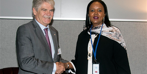 Durante su último día de estancia en Nueva York para asistir a la semana ministerial de Naciones Unidas, el Ministro de Asuntos Exteriores y de Cooperación, Alfonso Dastis, ha mantenido hoy una reunión con su homóloga de Kenia, Amina Mohamed.