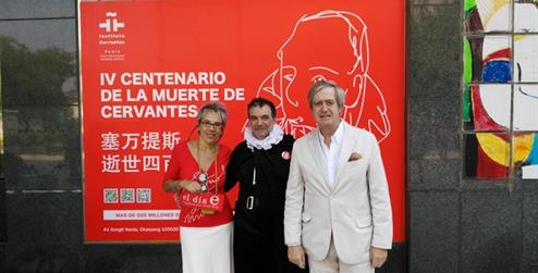 Con la colaboración de todas las Embajadas de los países de lengua española acreditadas en Pekín, incluido los EEUU y Guinea Ecuatorial, la fiesta del día E fue inaugurada por el Embajador de España, Manuel Valencia y recibió la visita de un ilustre personaje, Miguel de Cervantes, el legendario autor del Quijote. Don Miguel viajó en el tiempo para comprobar que, 400 años después de su muerte, la lengua española es cada vez más apreciada en China, donde el Instituto Cervantes ha formado ya a más de 20.000 alumnos en los 10 años que lleva abierto su centro en Pekín. Toda la familia del español pudo disfrutar de actividades culturales, cursos gratuitos de español, música y gastronomía de los distintos países participantes.