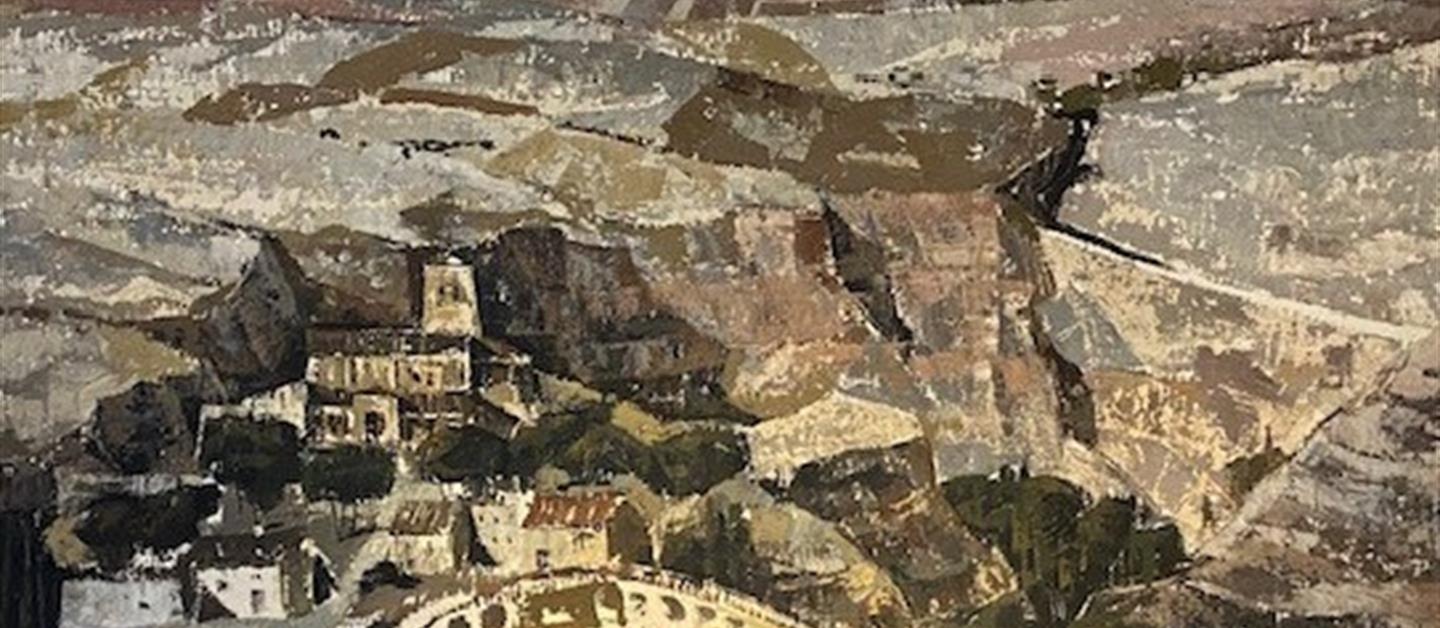 Esta obra podría ser clasificada en lo que se ha considerado esa primera etapa más paisajística del artista (fin. años 50 - años 60). Es una vista que nos ha parecido siempre muy interesante por estar llena de detalles, formas rectas y cúbicas, por colores terrosos y suaves que construyen perfectamente esta imagen.