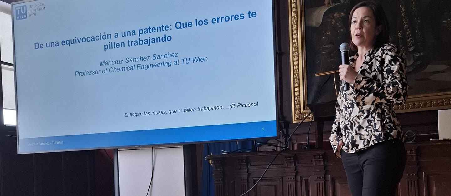 • Maricruz Sánchez, desde 2021 profesora titular de Ingeniería Química en el Instituto de Ingeniería Química, Ambiental y de Biociencias de la TU Wien, quien presentó “De una equivocación a una patente: Que los errores te pillen trabajando”. La Dra. Sánchez explicó cómo un error accidental en el laboratorio -donde investiga en el campo de la catálisis heterogénea, con estudios de óxidos metálicos mezclados, zeolitas ácidas y la combinación de iones metálicos alojados en zeolitas- derivó en un proceso industrial más sostenible y en la obtención de patentes, subrayando la importancia de la preparación y el conocimiento para transformar errores en innovación.