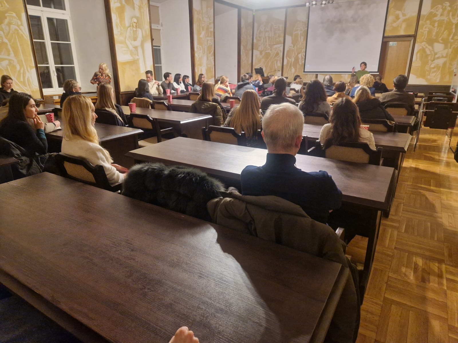 Abrimos un 9 de febrero con la proyección de la primera película: “Mataharis", el éxito de Icíar Bollaín, que narra la historia de las vidas de tres mujeres que son detectives privados, pero no llevan sombrero ni pistola, sino que hacen la compra, cambian pañales y tratan de conservar a su pareja. Mientras trabajan desvelando secretos ajenos, las tres descubrirán que hay mentiras propias que no han sabido ver y verdades que es mejor no revelar. Con la histórica Aula Donelaitis llena, no pudimos tener mejor comienzo.