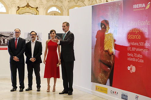 Por la tarde, Sus Majestades los Reyes se trasladaron hacia el Gran Teatro de La Habana “Alicia Alonso”, donde visitaron la exposición fotográfica “España-Cuba: contigo en la distancia” que refleja 500 años de Historia, 80 años de la Agencia EFE y 70 años de Iberia volando a Cuba. A última hora del día, tuvo lugar la cena oficial de bienvenida en el Palacio de la Revolución.