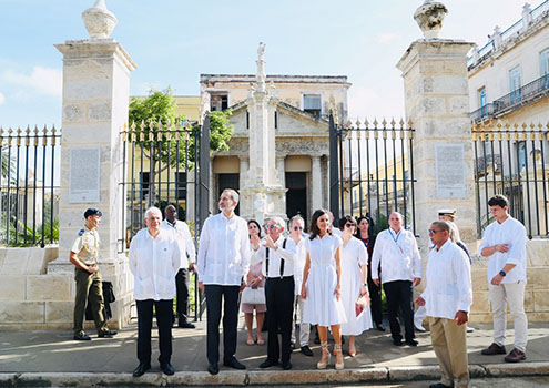 El miércoles 13, Sus Majestades los Reyes recibieron a la colectividad española residente en Cuba. A ellos dedicó unas palabras Don Felipe asegurando que “nada de lo que ocurra en Cuba es ajeno a España y nada de lo que ocurra en España es ajeno a Cuba. Vosotros, españoles -y también cubanos- sois la viva expresión de lo mucho que une a nuestros pueblos”. Tras recordar que España es el principal socio comercial de Cuba en la Unión Europea y el principal inversor turístico en la Isla, Don Felipe recalcó que la visita tiene lugar con motivo del V Centenario de la fundación de La Habana por España, “un hecho histórico que merece una conmemoración especial”. Una vez finalizada la recepción, Su Majestad el Rey se trasladó a la residencia de la Embajada de España donde se reunió con una veintena de empresarios españoles.