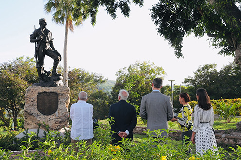 Sus Majestades los Reyes, durante su visita al Memorial de la Loma de San Juan. FOTO CASA REAL