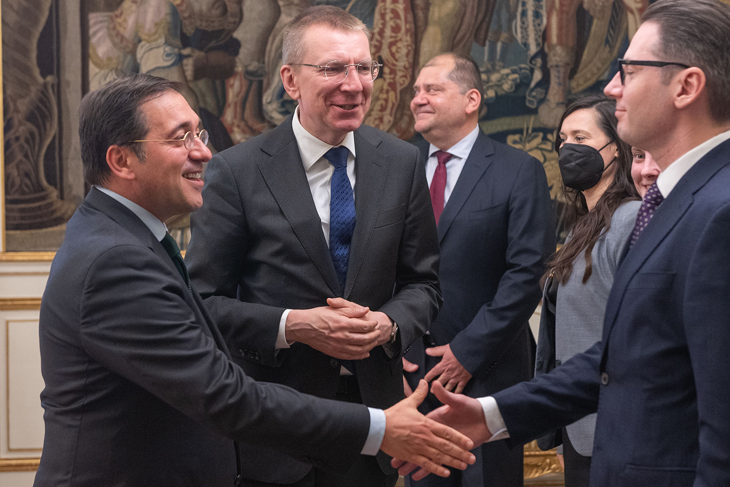 Durante su reunión, han conversado sobre temas bilaterales y multilaterales en materia de cooperación política y de seguridad, además de abordar otros ámbitos, como el cultural, el empresarial y la presencia del español en Letonia.