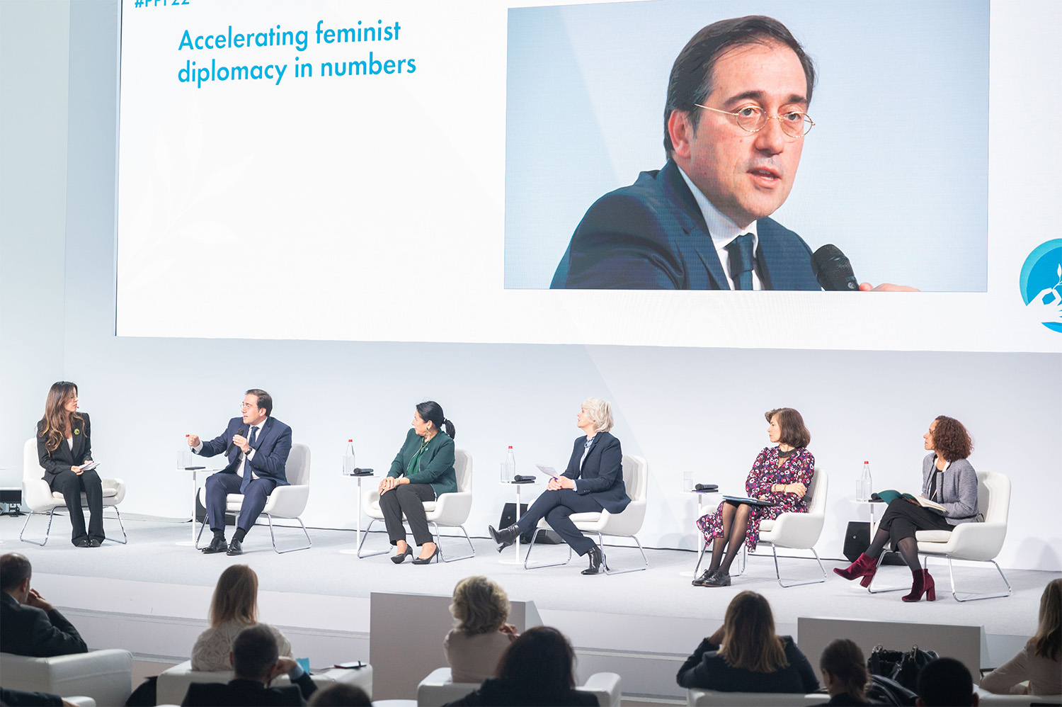 En París, José Manuel Albares se entrevistó con Audrey Azoulay, directora general de la UNESCO e intervino en el panel “Accelerating Feminist Diplomacy in Numbers”, en el ámbito de la quinta edición del Foro de Paz de París. Esta plataforma internacional, que convoca a representantes de Estados, organismos internacionales, empresas, bancos de desarrollo, fundaciones y ONG de todas las regiones del mundo, tiene como objetivo transformar soluciones en acciones concretas. Esta quinta edición está centrada en superar las distintas crisis mundiales y en prevenir una polarización mundial destructiva que pondría en peligro los esfuerzos colectivos en muchos desafíos críticos para la humanidad.