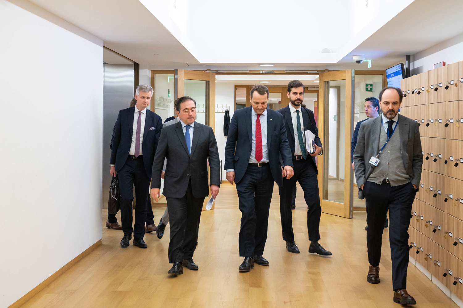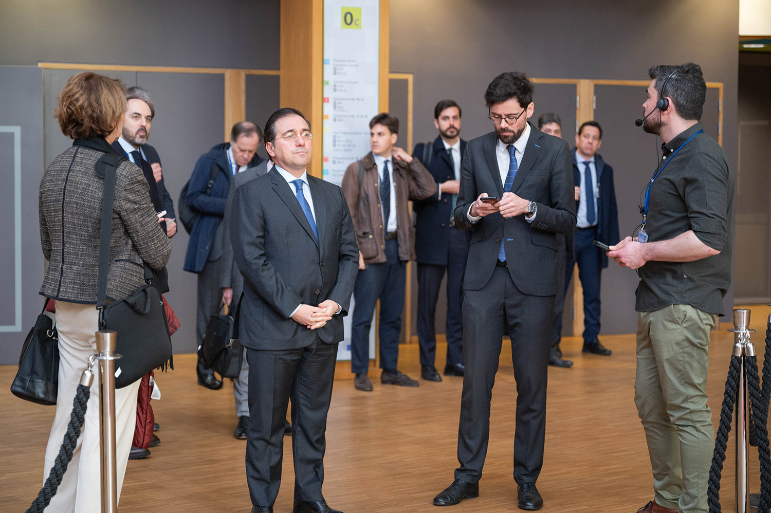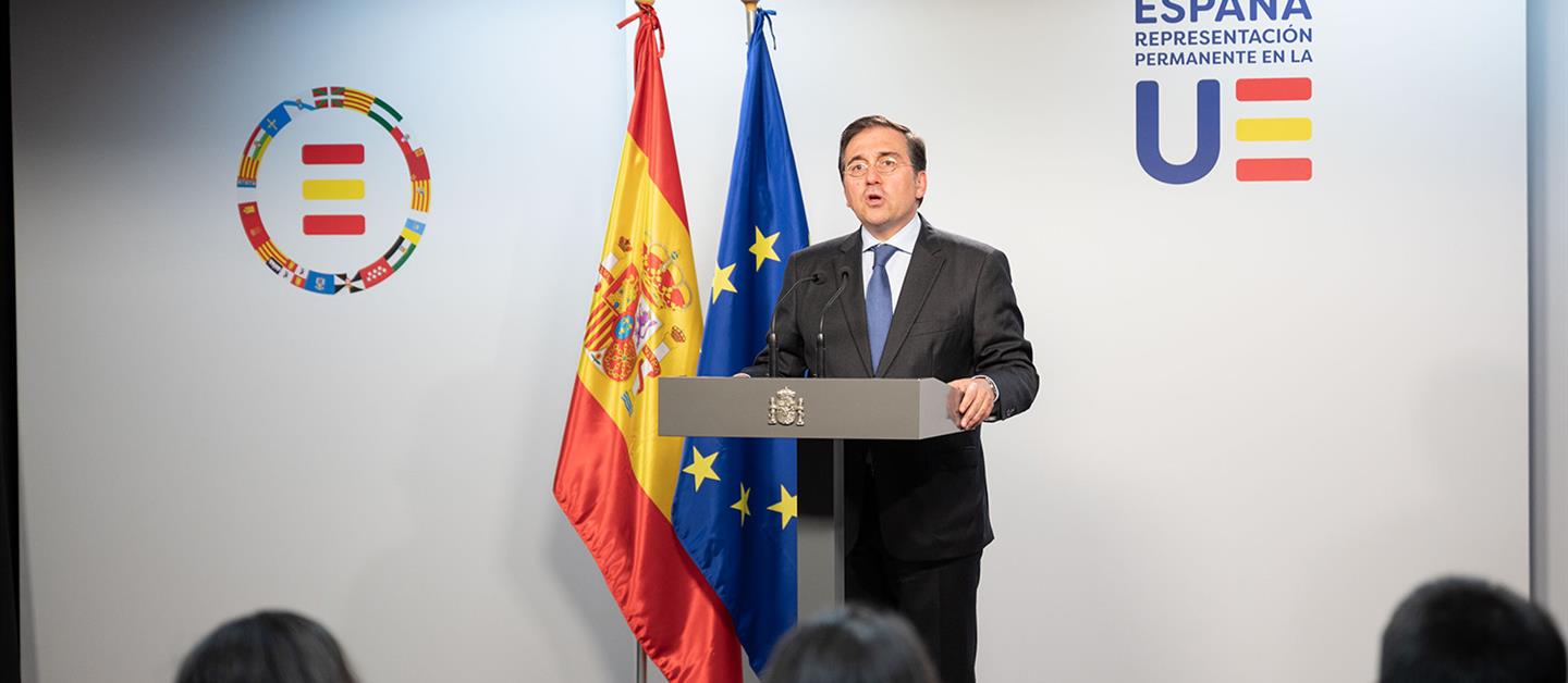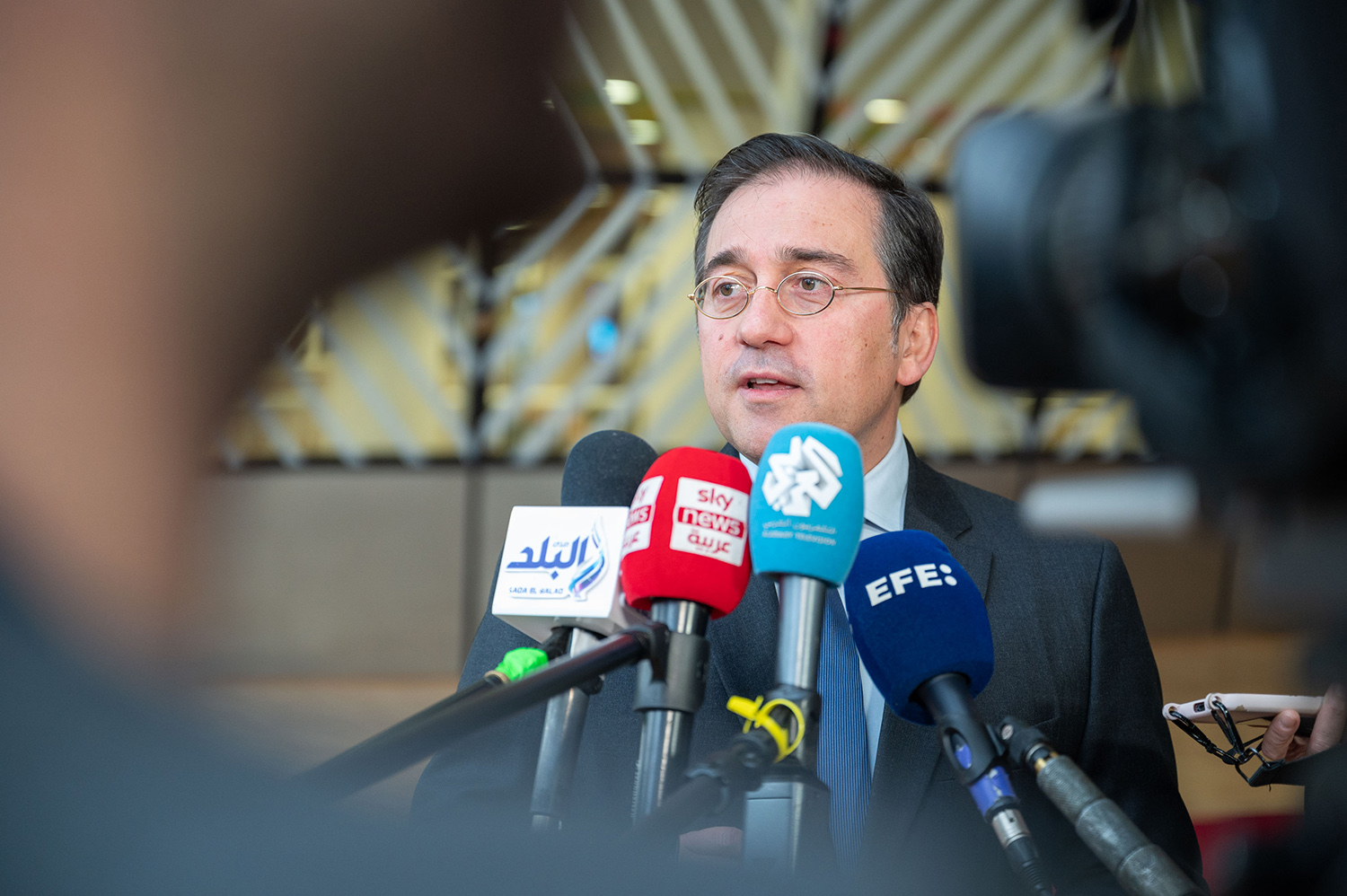 Minister Albares took part in a Foreign Affairs Council that covered the situation in the Middle East, the Russian aggression against Ukraine, current events in the Sahel and the European Union's relationship with Belarus