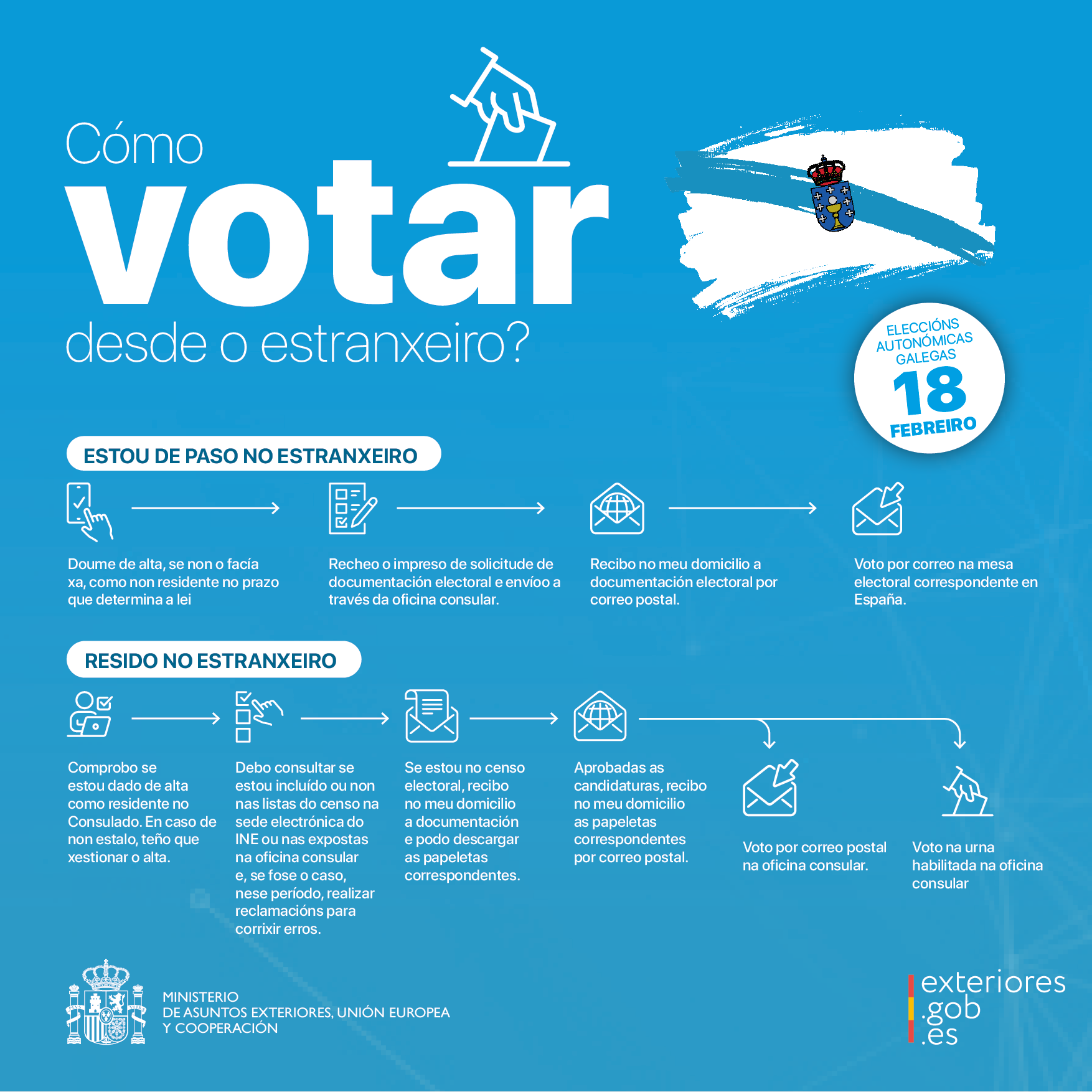 Eleccións ao Parlamento de Galicia Cómo votar desde o estranxeiro?O vindeiro 18 de febreiro de 2024 celebraránse eleccións ao Parlamento de Galicia.Preguntas frecuentesPrazos ...