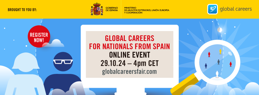 Le Salon Virtuel de l'Emploi pour les ressortissants espagnols est un événement virtuel qui présente des opportunités professionnelles dans des organisations internationales, spécialement conçu pour les candidats de nationalité espagnole. Il est organisé par l'Unité des Fonctionnaires Internationaux (UFI) du Ministère des Affaires étrangères, de l'Union européenne et de la Coopération en collaboration avec Global Careers, le plus grand portail d'événements virtuels de ressources humaines au monde, spécialisé dans les organisations internationales, le secteur public international et les organisations non-gouvernementales (ONG).