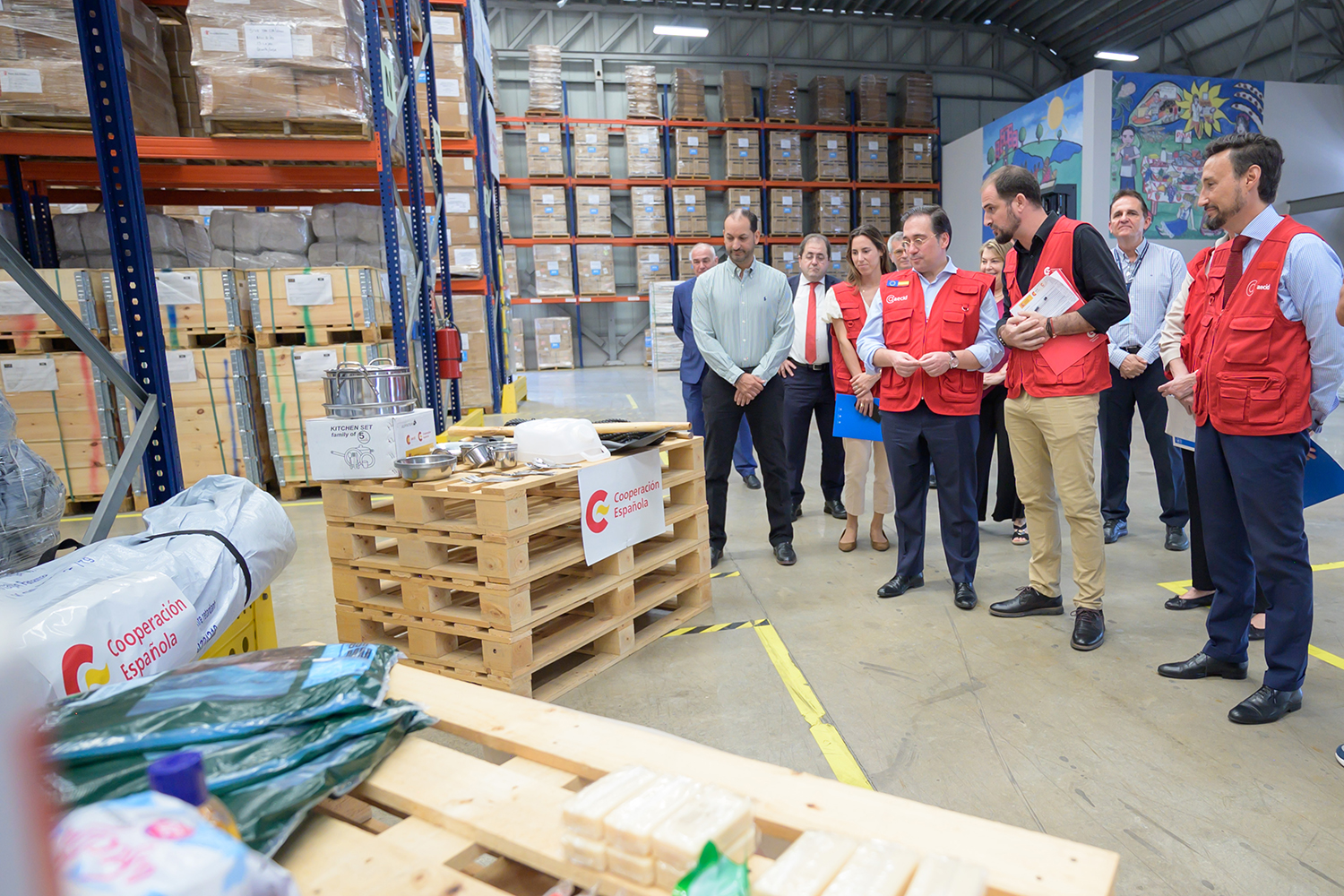 Le ministre des Affaires étrangères, de l'Union européenne et de la Coopération lors de sa visite à l’entrepôt de fournitures humanitaires des Nations Unies au Panama, en mars 2024.