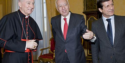Por la tarde, el ministro García-Margallo y el secretario de Estado Pietro Parolin intercambiaron puntos de vista sobre los temas más destacados de la situación internacional y de la relación bilateral. Al finalizar la visita, ambos se felicitaron por las excelentes relaciones que España mantiene con la Santa Sede, basadas en el diálogo y el respeto mutuo.