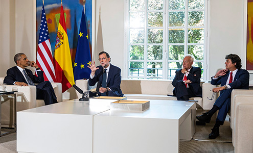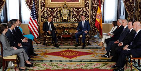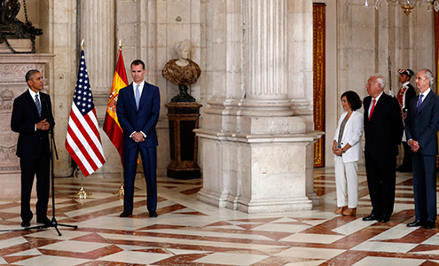El presidente Obama llegó a Madrid donde fue recibido S.M. Rey Felipe VI y donde mantuvo reuniones con el presidente del gobierno en funciones, Mariano Rajoy. Posteriormente, el Presidente Obama se desplazó a la base naval de Rota.
