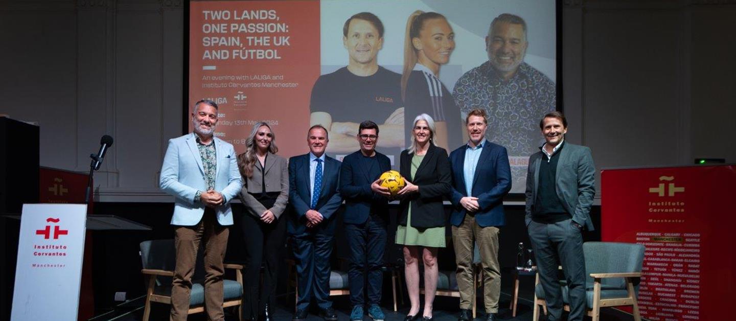 El Instituto Cervantes en Mánchester y LaLiga celebraron el pasado lunes la conexión entre España y el Reino Unido a través de su pasión por el fútbol. Para ello, reunieron en la sede del Instituto Cervantes al exfubolista Gaizka Mendieta, el periodista deportivo Guillem Balagué y la futbolista del Everton Toni Duggan, quienes bajo el título Two lands, one passion: Spain, the UK and fútbol conversaron sobre sus experiencias en el mundo del fútbol en ambos países.