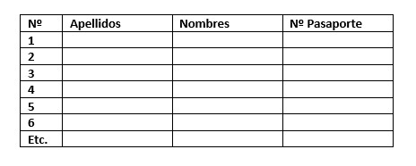 Les rogamos que nos facilite una lista numerada, en formato Excel, con los nombres y apellidos y número de pasaporte de las personas que solicitarán un visado TEC para trabajar como socorristas en España en la temporada 2026. Recuerde que únicamente deberán incluir aquellos solicitantes nuevos que no hayan participado en las temporadas 2024 y 2025.