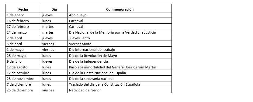 No Laborables– 31 de diciembre 2025 Calendario de días festivos 2026 Localización y contacto Dirección: Arístides Villanueva 444. 5500 Mendoza.