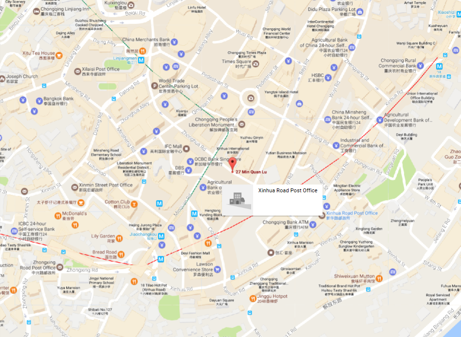 Dirección: Room 2104, Xinhua International Tower, No. 27 Minquan Road, Yuzhong District, Chongqing, China.