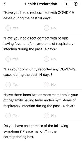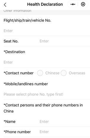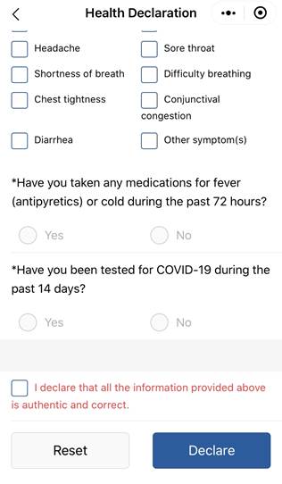 En la página web del Daily English News, desde el siguiente enlace, puede accederse al modelo de formulario de “Declaración del Estado de Salud” (Health Declaration), en su versión inglesa, que ha de cumplimentarse a la salida y a la entrada de China. Puede hacerse electrónicamente 24 horas antes de emprender viaje, o en papel en el mismo aeropuerto: