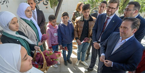 A continuación, José Manuel Albares se reunió con representantes de ONG españolas en Jordania, a los que trasladó el reconocimiento de nuestro país a su labor, y visitó uno de los campos de la agencia de las Naciones Unidas para los Refugiados Palestinos (UNRWA), donde conoció de primera mano la labor que realiza esta organización. Esta visita se produce sólo una semana después de haber anunciado al comisionado de esta agencia, Philippe Lazzarini, la donación de 20 millones de euros más para continuar con su labor de ayuda a la población palestina.