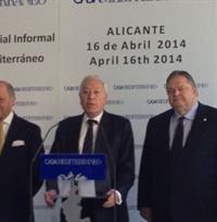 17/04/2014. Declaración del Grupo Mediterráneo 17 de abril de 2014 El Grupo Mediterráneo, compuesto por los ministros de Asuntos Exteriores de Chipre, Francia, Grecia, Italia, Malta, Portugal y España, reunido hoy en Alicante, ...