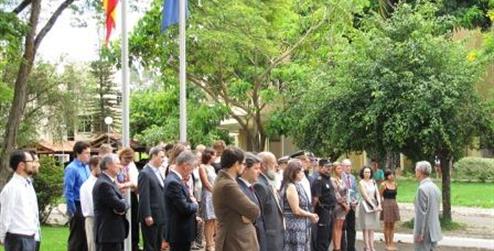 En la mañana de hoy, los miembros de la Embajada de España en Brasilia ha guardado un minuto de silencio en memoria de las víctimas del atentado contra la Embajada de España en Afganistán.