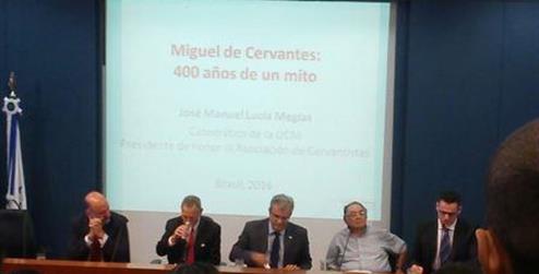 El acto tuvo como ponente principal al catedrático de la UCM y presidente de honor de la asociación de cervantistas, Jose Manuel Lucía Megías y contó entre otros con la presencia del Embajador de España en Brasil y con el Rector de la Universidad de Brasilia (UnB). Ante un auditorio lleno el Embajador resaltó lo importante que es para España y la literatura española la figura de Miguel de cervantes, al igual que en el resto del mundo puesto que en todos los países se sabe quién es cuando se le  cita.