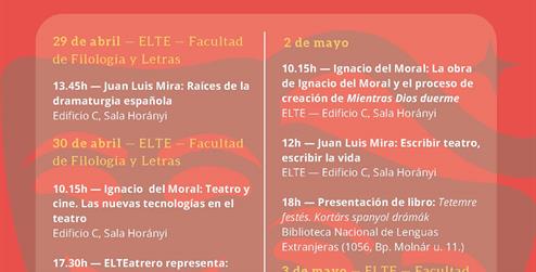 II. Jornadas del Teatro Contemporáneo de España tendrán lugar del 29 de abril al 3 de mayo de 2019 en la Universidad Eötvös Loránd — Facultad de Filología y Letras (1088, Bp. Múzeum krt. 4.)