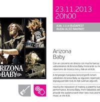 Concierto del grupo de rock Arizona Baby en Budapest 13 de noviembre de 2013 Los españoles Arizona Baby darán un concierto en el A38 de Budapest el próximo sábado 23 de noviembre.