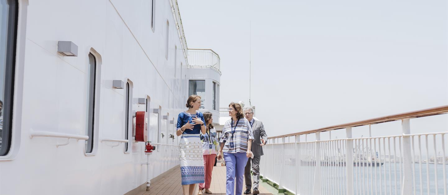 La Embajadora tuvo la oportunidad de conocer también las instalaciones para el personal sanitario voluntario y sus familias, y se reunión con los voluntarios españoles trabajando actualmente en el buque-hospital Global Mercy.