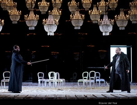 Para este escenario incomparable, cuyas funciones tienen lugar en el impresionante Castillo de Olavinlinna, el Teatro Real ha preparado una adaptación del montaje de I puritani, realizado por Emilio Sagi y estrenado en el escenario madrileño la temporada pasada que, además de una gran acogida por la crítica, disfrutó de una cálida acogida por el público dentro y fuera de su sala, ya que fue retransmitido a pantallas de toda España, en abierto por Palco Digital y a través del canal de Facebook del Teatro Real en la que fue la primera emisión de este tipo realizada en el mundo.