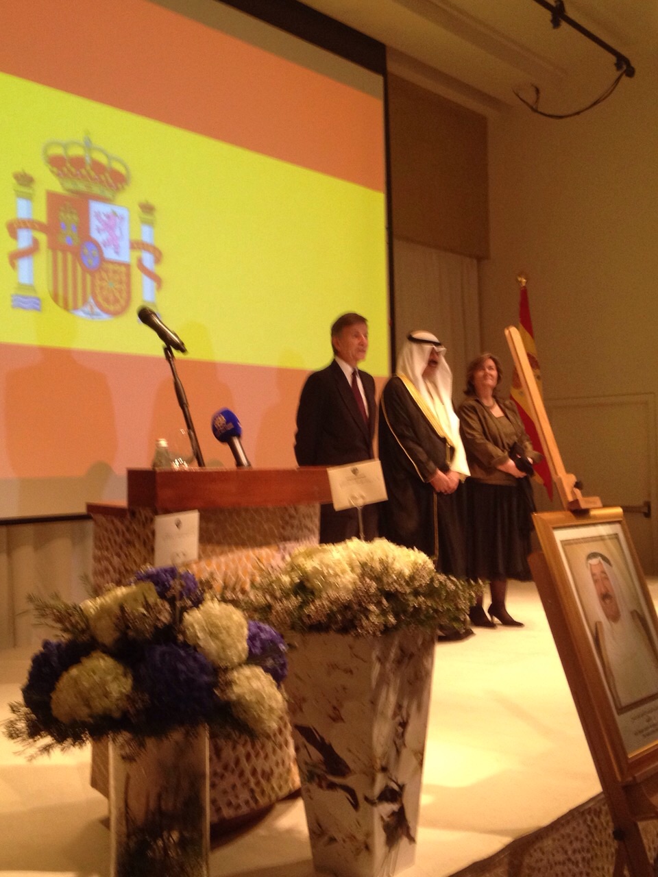 El Embajador Carlos Sáenz de Tejada y el Subsecretario de Asuntos Exteriores de Kuwait, Jaled Al Yarala, presidieron hoy la recepción de la Embajada con motivo de la Fiesta Nacional de España, a la que fueron invitados numerosas personalidades kuwaitíes y los miembros de la comunidad española. En su discurso, el Embajador se refirió a los actos de conmemoración de 50 años de relaciones diplomáticas entre los dos países y mostró su satisfacción por la creciente presencia de empresas españolas en Kuwait.
