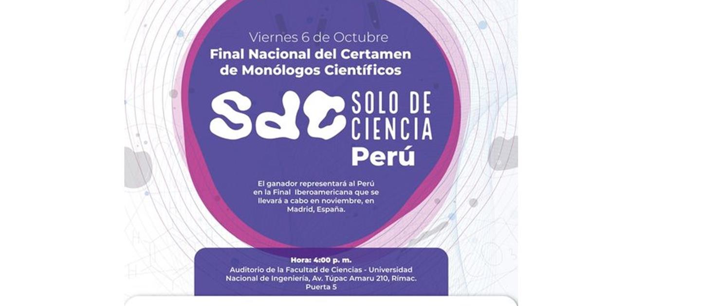 Esta final nacional peruana está organizada por el Consejo Nacional de Ciencia Tecnología e Innovación Tecnológica (CONCYTEC) y la elección del o la monologista que represente al Perú el 28 de noviembre en Madrid se llevará a cabo el viernes 6 de octubre a las 16:00.