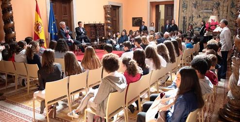 El Ministro junto con el Embajador D. Eduardo Gutiérrez Sáenz de Buruaga, recibió a primera hora de la mañana en la Residencia de la Embajada de España en Lisboa, el Palacio de Palhavã, a un grupo de alumnos del Instituto español Giner de los Ríos, donde tuvieron coloquio para explicar cómo funciona una Embajada.