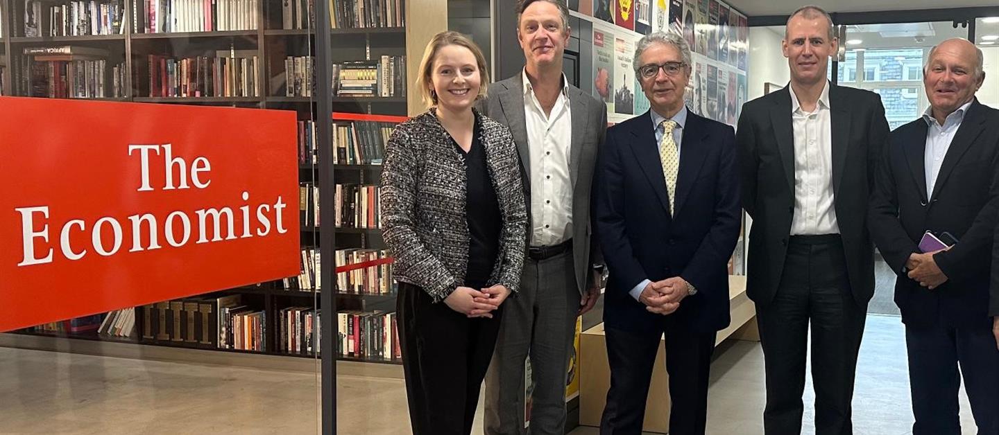 El embajador visitó la redacción de The Economist, donde se reunió con el director de Internacional, Patrick Foulis, y otros miembros del consejo editorial.