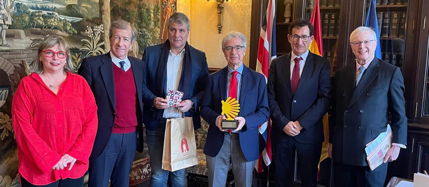 The delegation from the Town Councils of the English Camino and the Provincial Council of La Coruña was chaired by the Mayor of Corcubión, Mr. Francisco Domínguez, and the Provincial Deputy for Sports, Youth and the Camino, Mr. Antonio Leira. Both were welcomed by Ambassador Pascual Marco, who offered his support to promote the Camino amongst the British people.​