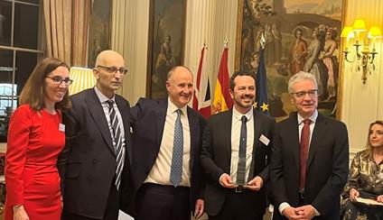 La embajada acogió la entrega de la Real Orden de Isabel la Católica a Félix Benito, fundador de la empresa de distribución de productos españoles C&D Wines, por su contribución a la promoción de la gastronomía española en el Reino Unido.
