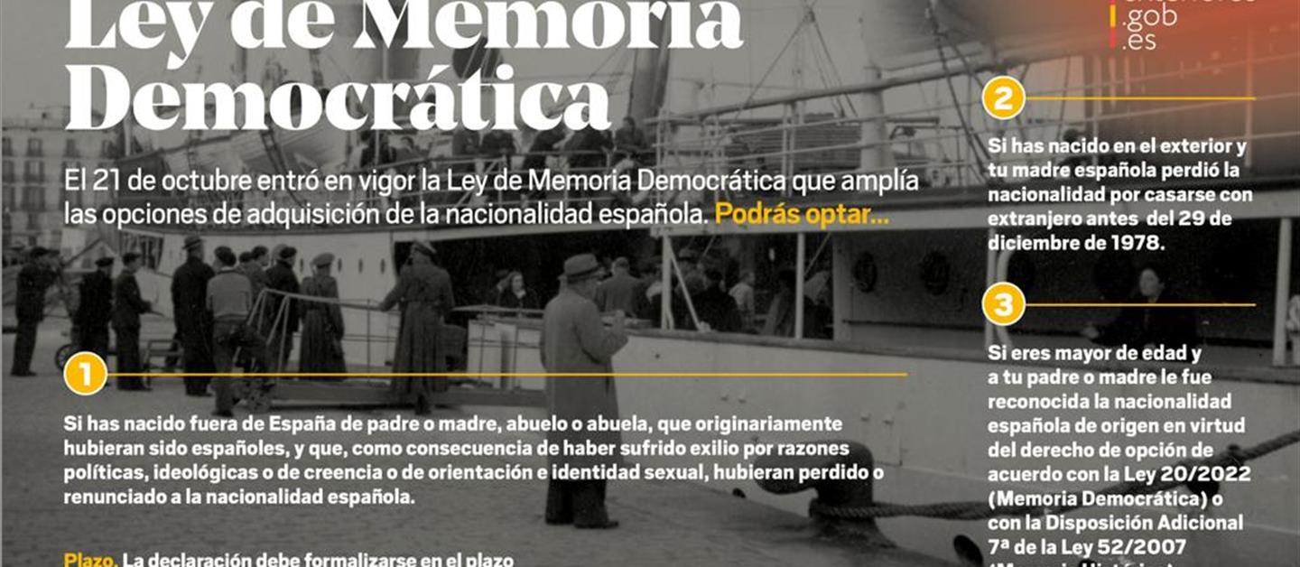 Los nacidos fuera de España de padre o madre, abuelo o abuela, que originariamente hubieran sido españoles, y que, como consecuencia de haber sufrido exilio por razones políticas, ideológicas o de creencia o de orientación e identidad sexual, hubieran perdido o renunciado a la nacionalidad española, podrán optar a la nacionalidad española, a los efectos del artículo 20 del Código Civil. Igualmente, podrán adquirir la nacionalidad española las personas que se encuentren en los siguientes supuestos:
