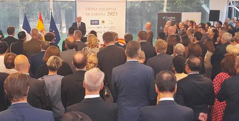 Esta tarde, la Residencia de la Embajada de España en París alberga la tradicional recepción con motivo de la Fiesta Nacional de España, que se celebra mañana, 12 de octubre. Este evento reúne a una numerosa representación institucional y de la vida política, económica, social y cultural que participa en las relaciones bilaterales entre España y Francia.