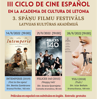 III Ciclo de Cine en la Academia de Cultura Embajada de España en Letonia colabora con la Academia de Cultura de Letonia para organizar un ciclo de cine español, este año su 3ª edición.Este año ...